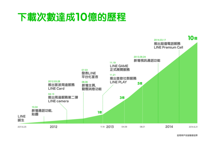 LINE在日本、韩国、泰国以及台湾地区拥有最多的用户,这些地方被视为LINE的核心市场。